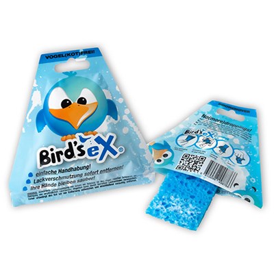 Denn BirdsEx ist ein sympathischer Werbeträger zum Entfernen von Vogelkot auf empfindlichen Lackflächen.