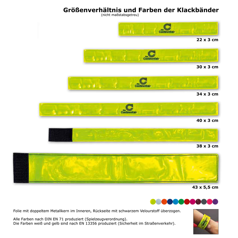 Sicherheits-Klackbänder sind im Straßenverkehr nicht mehr wegzudenken. Sie sind besonders flexibel in Ihrer Anbringung auf der Kleidung, wenn sich Fußgänger oder Radfahrer bei Dunkelheit sichtbar machen wollen.