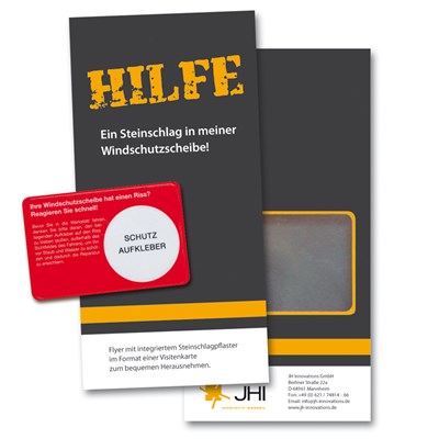 1. Scheibenpflaster in Visitenkartenform mit integrierten Schutzaufkleber