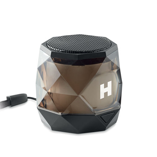 5.0 Bluetooth Lautsprecher im ABS Gehäuse mit ""Diamond Cut"" Oberfläche. 6farbig wechselndes Licht. Handschlaufe. Spielzeit ca. 2 Stunden. Inkl. 1 wieder aufladbare Lithium 200 mAh Batterie. Ausgangsleistung: 3W, 4 Ohm.