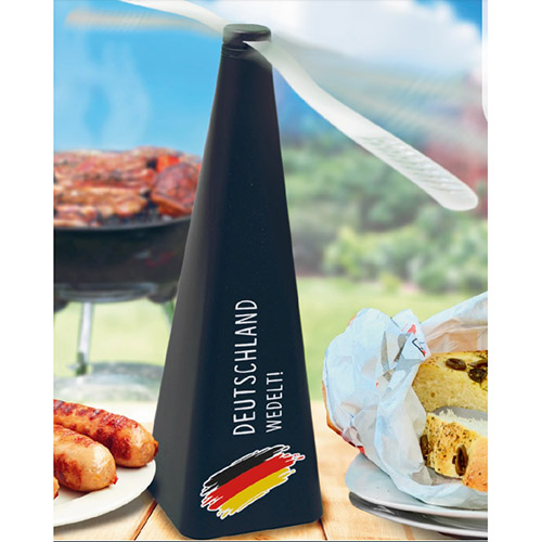 Lassen Sie den Job des Verscheuchens doch andere übernehmen – unseren Fliegenwedler. Die dekorative Pyramide erledigt ihren Job dauer- und gewissenhaft. Stellen Sie das Gerät mittig auf den Tisch und schalten Sie es ein. Die Flügel fangen an sich zu drehen und wedeln somit die Fliegen weg vom Tisch fort in die Ferne. Die Schimmer-Streifen auf den Flügeln haben einen zusätzlichen Abwehreffekt.