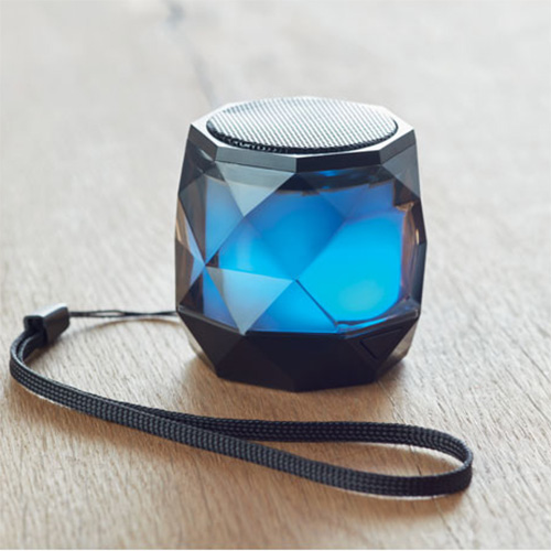5.0 Bluetooth Lautsprecher im ABS Gehäuse mit ""Diamond Cut"" Oberfläche. 6farbig wechselndes Licht. Handschlaufe. Spielzeit ca. 2 Stunden. Inkl. 1 wieder aufladbare Lithium 200 mAh Batterie. Ausgangsleistung: 3W, 4 Ohm.