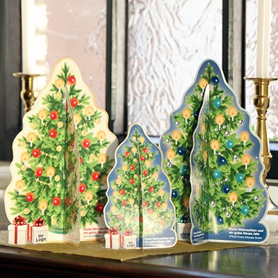 Die neue Idee für Ihr Weihnachtsmailing: 3D-Weihnachtsbaum In A4, einfach aufzustellen.