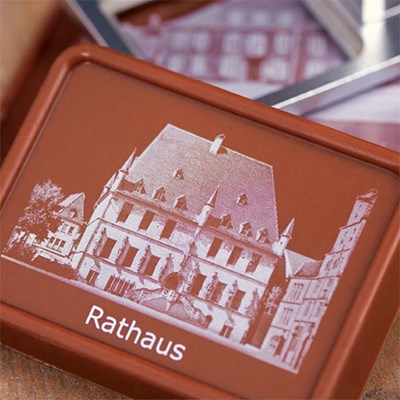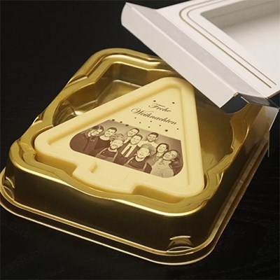 Feinste belgische Schokolade (Vollmilch, Dunkel, Weiß) bedruckt in der höchstmöglichen Auflösung